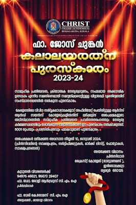 ആയതിനാൽ മേൽപറഞ്ഞ ഗുണങ്ങളുള്ള, അർഹതപ്പെട്ട ഒരു വിദ്യാർത്ഥി വിദ്യാർത്ഥിനിയുടെ പേരും പ്രത്യേക നേട്ടങ്ങളെക്കുറിച്ചുള്ള വിവരങ്ങളും സാധൂകരിക്കുന്ന സർട്ടിഫിക്കറ്റുകളും ഫോട്ടോകളും പ്രിൻസിപ്പാളിന്റെ സാക്ഷ്യപത്രം സഹിതം 10.01.2024നുള്ളിൽ ലഭിക്കത്തക്കവിധം അയച്ചുതന്ന് സഹകരി ക്കണമെന്ന് അഭ്യർഥിക്കുന്നു.